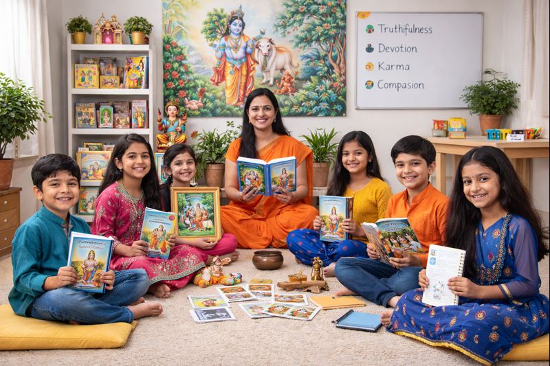 Children between the ages of 9 and 12 begin to think deeply, ask questions, and understand cause and effect. This stage is ideal for introducing the deeper meaning of Sanātana Dharma, where devotion, values, and responsibility come together in daily life.